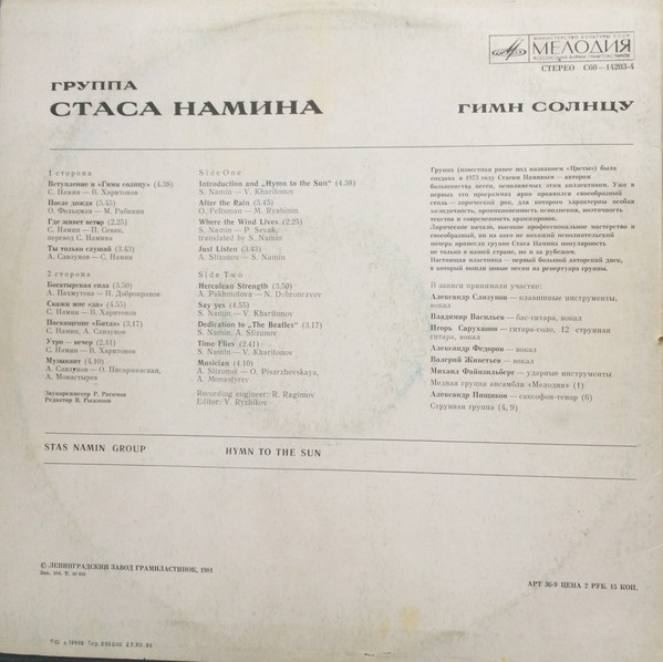 | A1 | Вступление И «Гимн Солнцу» = Introduction And "Hymn To The Sun" | 4:38 | |