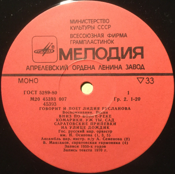 - Recorded By – Всесоюзная Студия Грамзаписи