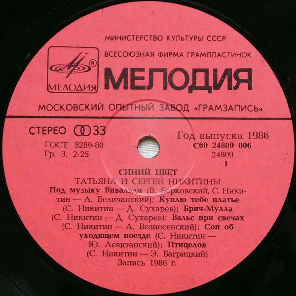 - Производитель грампластинки – Московский Опытный Завод «Грамзапись»
