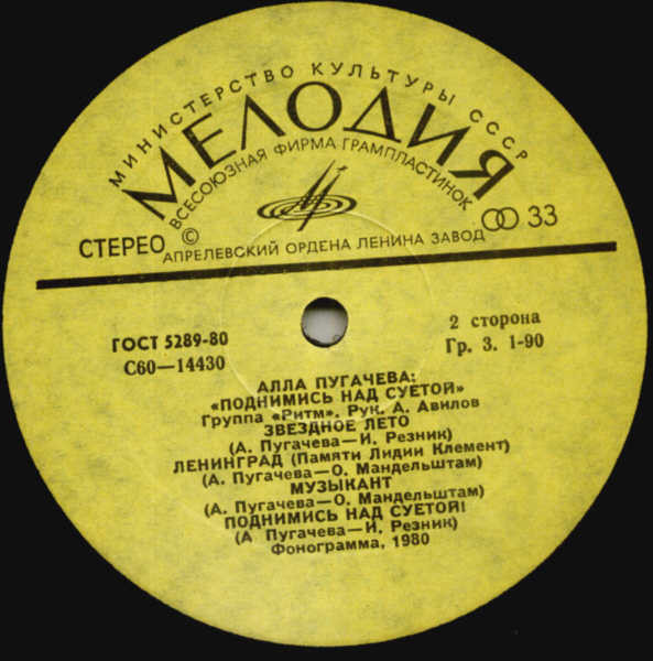 - Производитель грампластинки – Апрелевский Завод Грампластинок