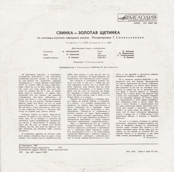 - Voice Actor [Сказочник] – Н. Малишевский*