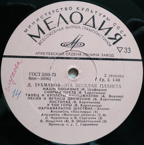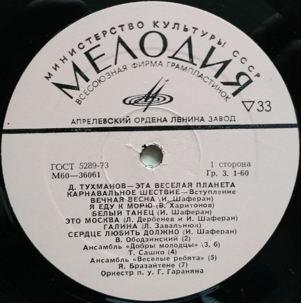 - Производитель грампластинки – Апрелевский Завод Грампластинок