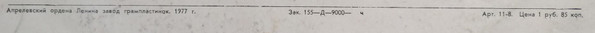 Апрелевский ордена Ленина завод грампластинок. 1977 г.