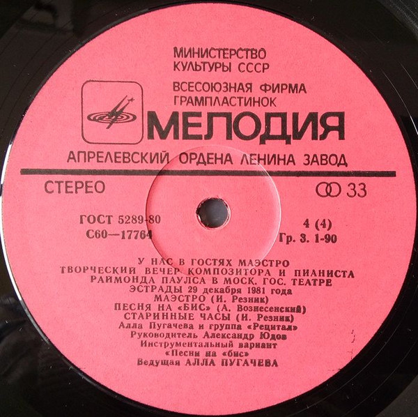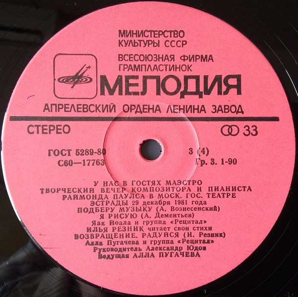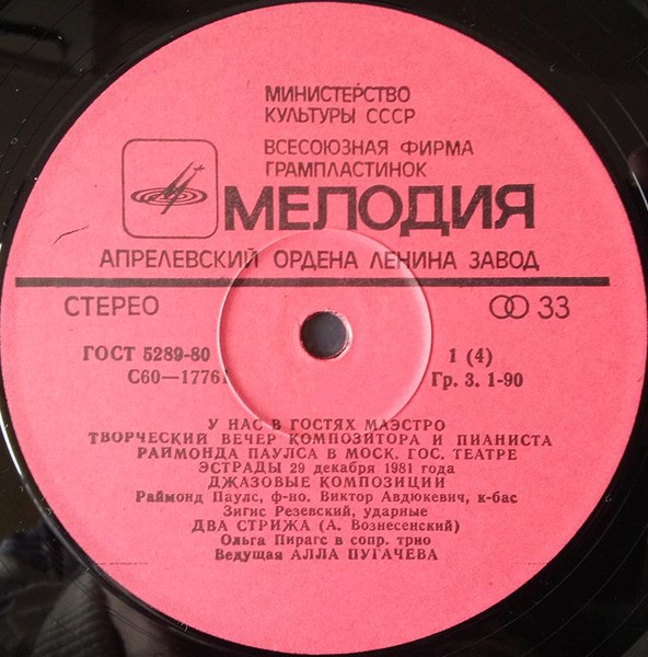 Всесоюзная студия грамзаписи Запись 1981 г.