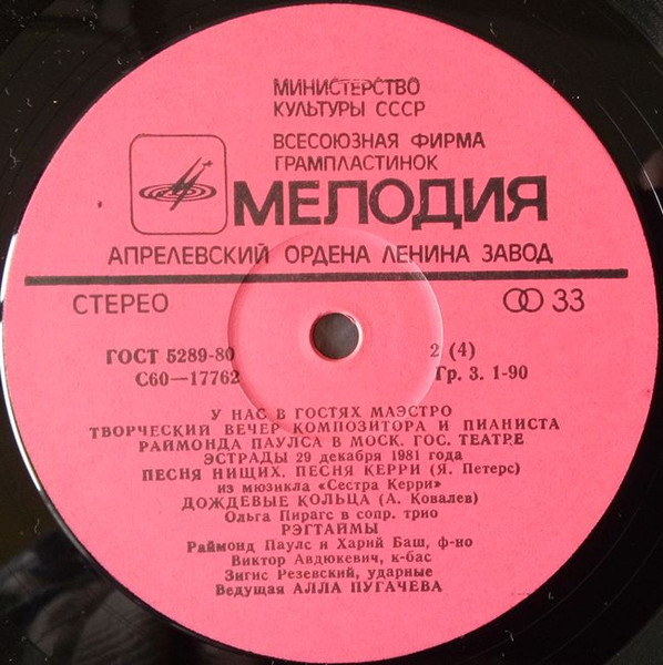 | B4 | Раймонд Паулс*, Виктор Авдюкевич, Зигис Резевский*– | Рэгтаймы |