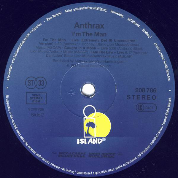 - Written-By – Anthrax (tracks: A1, A2, B1 to B3), Danny Lilker (tracks: B3), J. Rooney* (tracks: A1, A2, B1)
