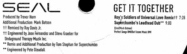 | D1 | Get It Together (Roy's Soldiers Of Universal Love Remix) | 7:25 | |