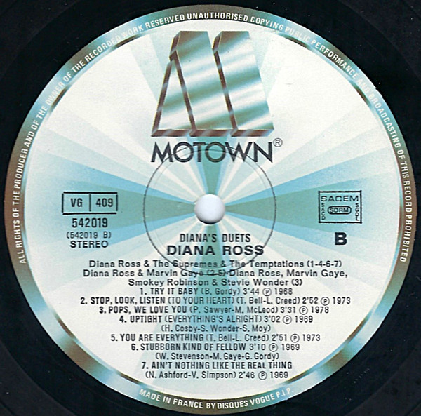| B2 | Diana Ross & Marvin Gaye– | Stop, Look, Listen (To Your Heart) | 2:52 |