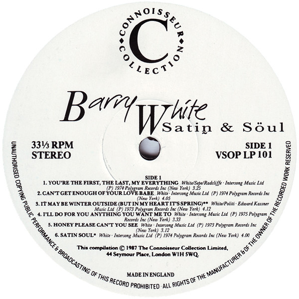 | B2 | Barry White– | I Love To Sing The Songs I Sing | 2:48 |