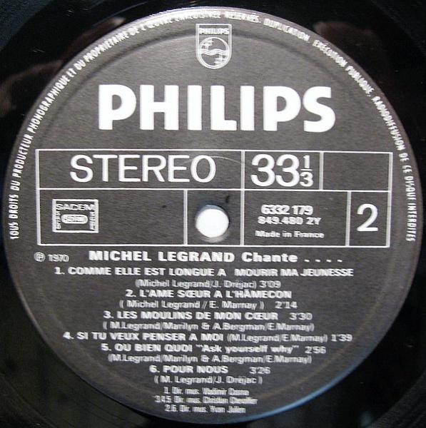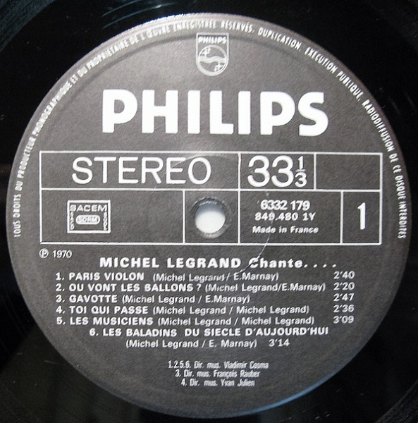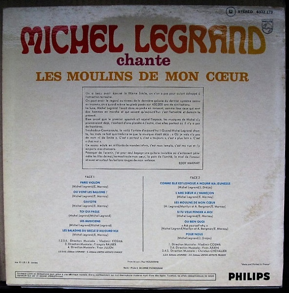 - Edited By – Michel Legrand (tracks: A1, A2, A3, A4, A5, B1, B2, B4), United Artists France (tracks: A6, B3, B5)
