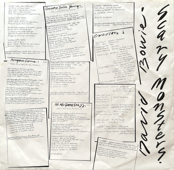 - Music By, Lyrics By – David Bowie (tracks: A1 to B2, B4, B5), Tom Verlaine (tracks: B3)