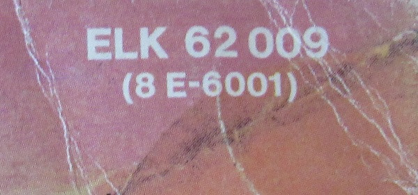 Cat# 'ELK 62 009' on back cover, spine and labels.