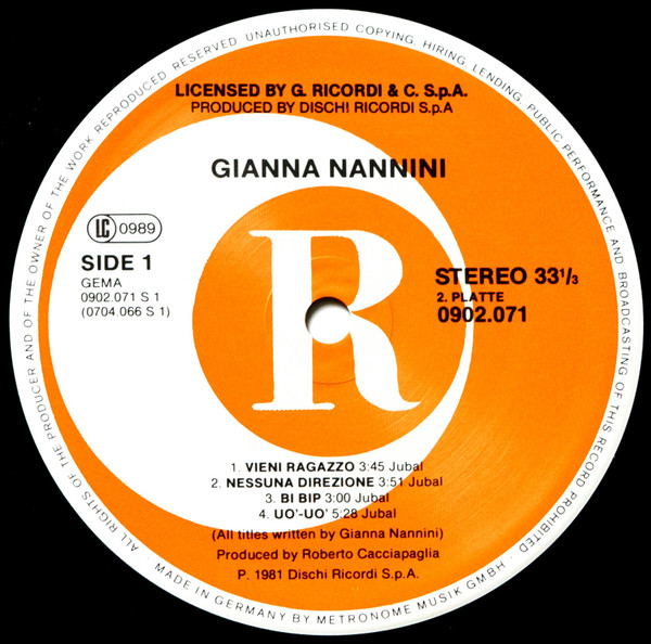 Vieni Ragazzo Written-By – Gianna Nannini Written-By – Gianna Nannini |