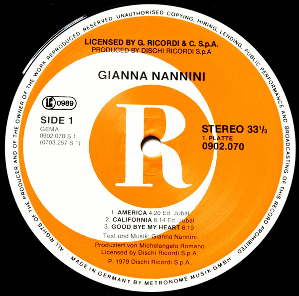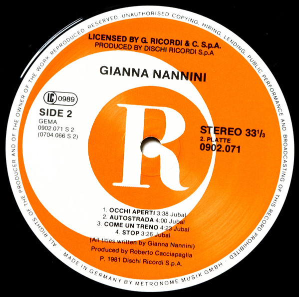 - Phonographic Copyright ℗ – Dischi Ricordi S.p.A.