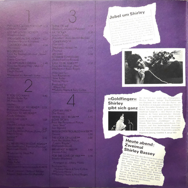 - Arranged By – Artie Butler (tracks: B6, C2), Ivor Raymonde (tracks: C1), Johnny Harris (tracks: C3, C4, C6, D1 to D6), Sid Feller (tracks: B2 to B5)