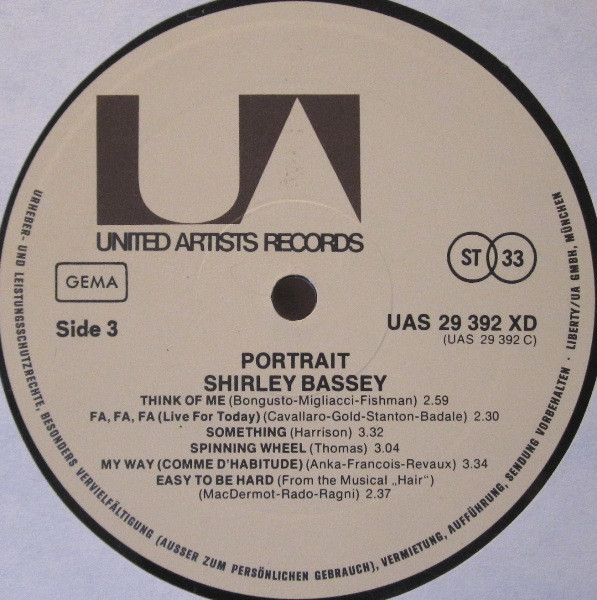 The repress Portrait denotes the company credit "United Artists Records GmbH" at the label perimeter, but also has a different rear cover without the image.