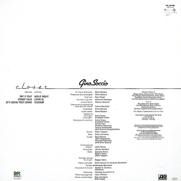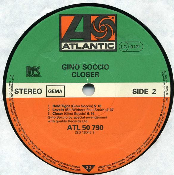 Gino Soccio by special arrangement with Quality Records Ltd.