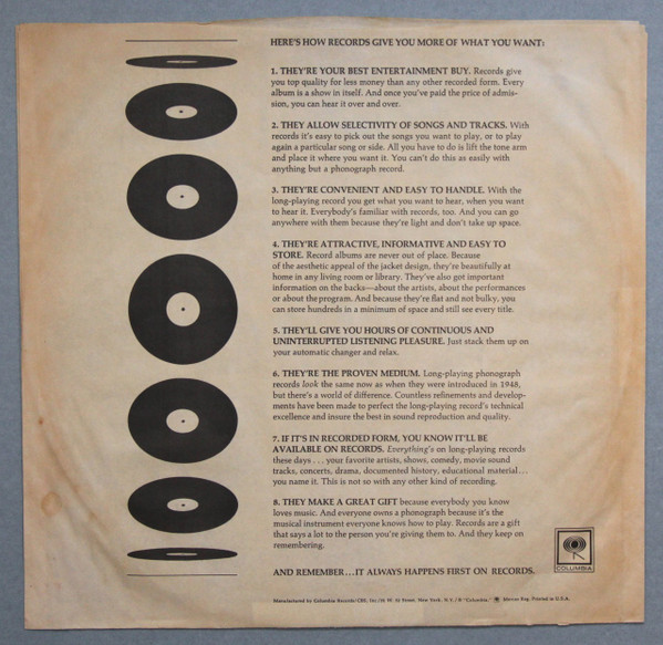 - Manufactured By – Columbia Records