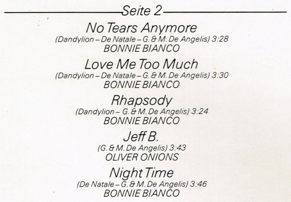 | B3 | Bonnie Bianco– | Rhapsody | 3:24 |