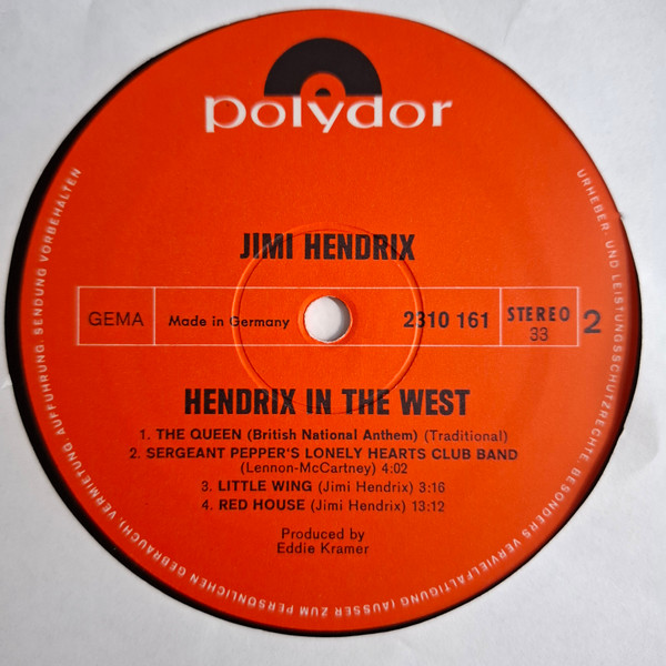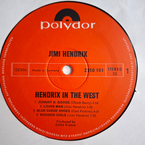 On this release, the rimtext "Urheber- und Leistungsschutzrechte (...) vorbehalten" starts at 2 o'clock and ends at 10 o'clock [Top of letter next to runout groove], whileas on the very similar Hendrix In The West, the text starts at 10 o'clock and ends at 2 o'clock [Bottom of letter next to runout groove].