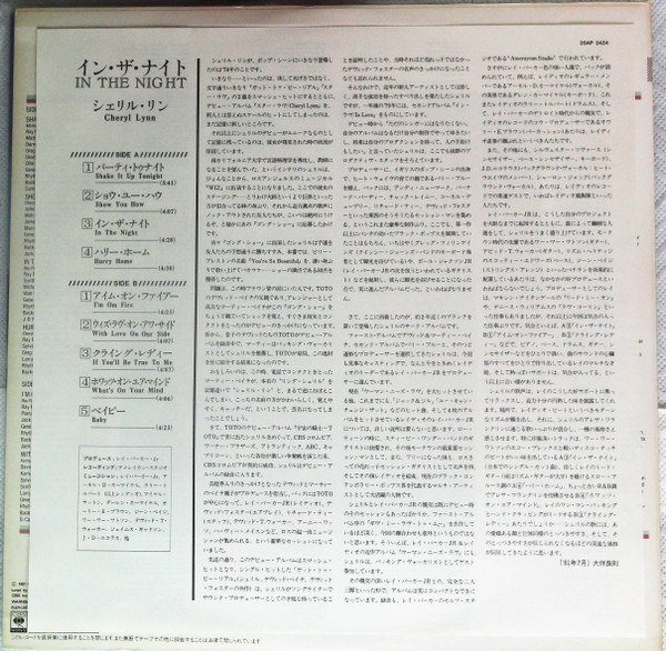 Backing Vocals – Cheryl Lynn, Sharon Jack