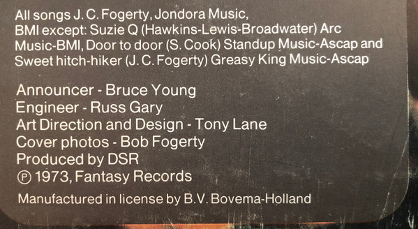 - Written-By – J.C. Fogerty* (tracks: A1, A3, A5 to B6)