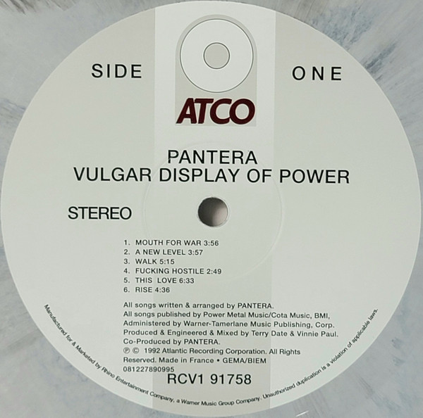 - Producer, Engineer, Mixed By – Terry Date, Vinnie Paul