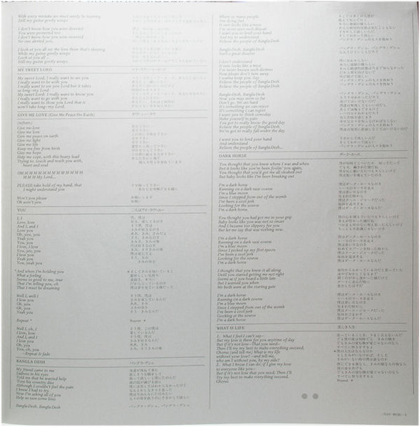 Includes printed inner sleeve, a 6-page lyrics insert and a Toshiba EMI catalog sheet.