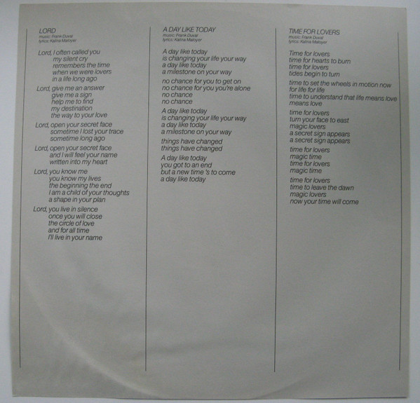 Lyric sheet with credits.