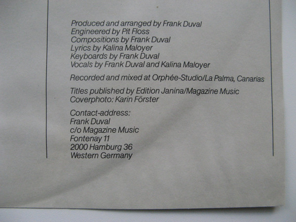 - Arranged By, Composed By, Keyboards, Producer – Frank Duval