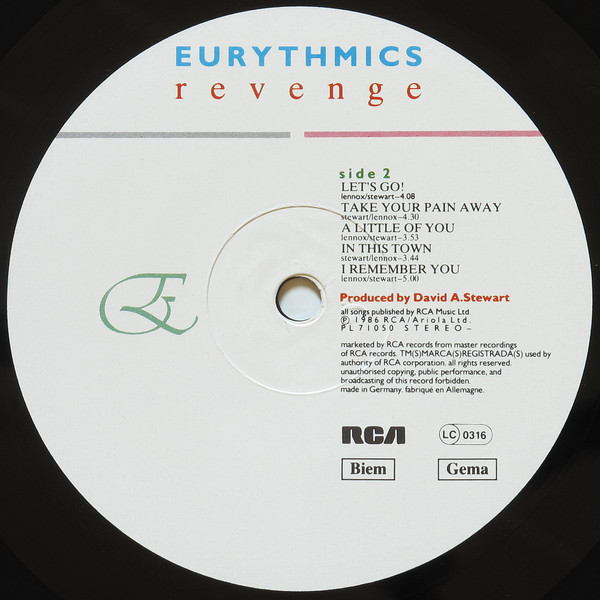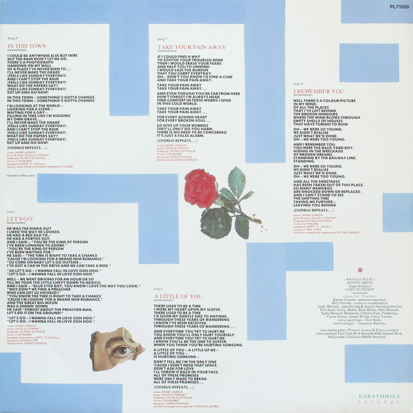 EURYTHMICS on cover front is in embossed printing.