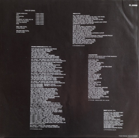 - Keyboards – David Bowie, Michael Garson*