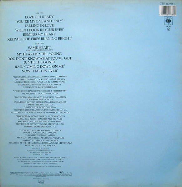 "Special thanks to Don Grierson and Bernd Hoffmann for their assistance in putting this album together, and to everyone at CBS Germany, EPIC Records and CBS Worldwide who make me very proud to be a member of their family of music... love Jenny"