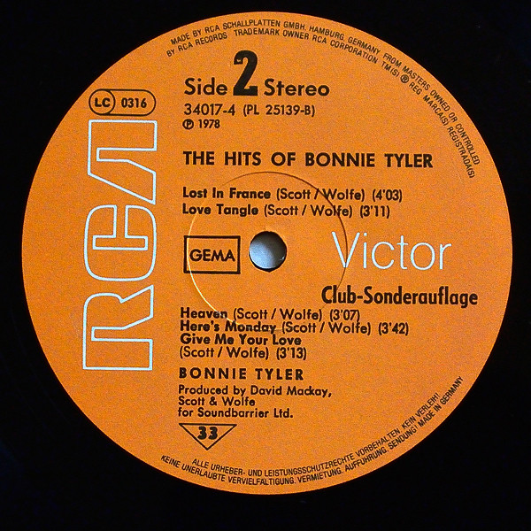 Compared to The Hits Of Bonnie Tyler, this have light-blue print on title