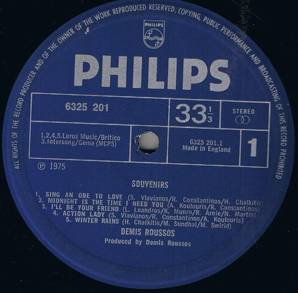 Labels credit Demis Roussos as producer for all tracks. Sleeve credits Leo Leandros as sole producer for "I'll Be Your Friend", and Robert Seto assisting Demis Roussos.