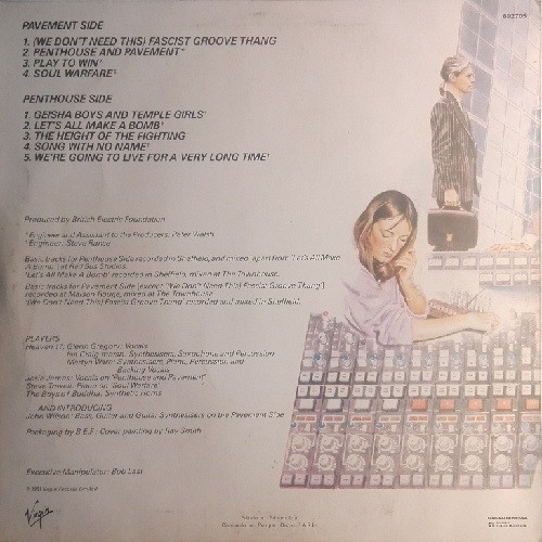 Basic tracks for Pavement Side recorded at Maison Rouge and mixed at The Townhouse, except "(We Don't Need This) Facist Groove Thing" recorded & mixed in Sheffield.