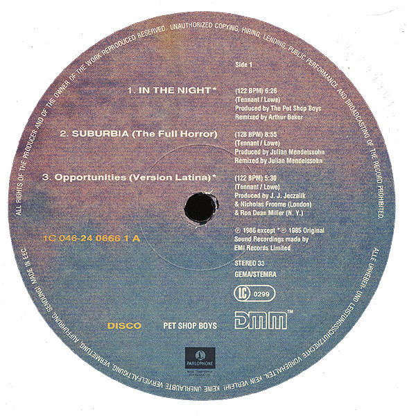 In The Night, Opportunities and West End Girls are analogue recordings.