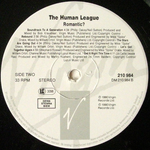 - Written-By – Neil Sutton (tracks: A1, A2, A5 to B3), Philip Oakey (tracks: A1, A2, A4 to B3)