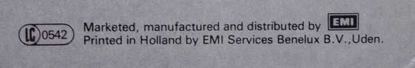 - Pressed By – EMI Services Benelux B.V.