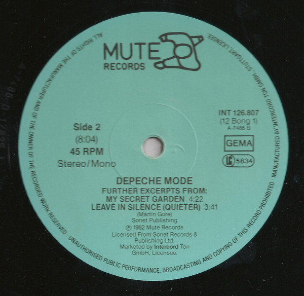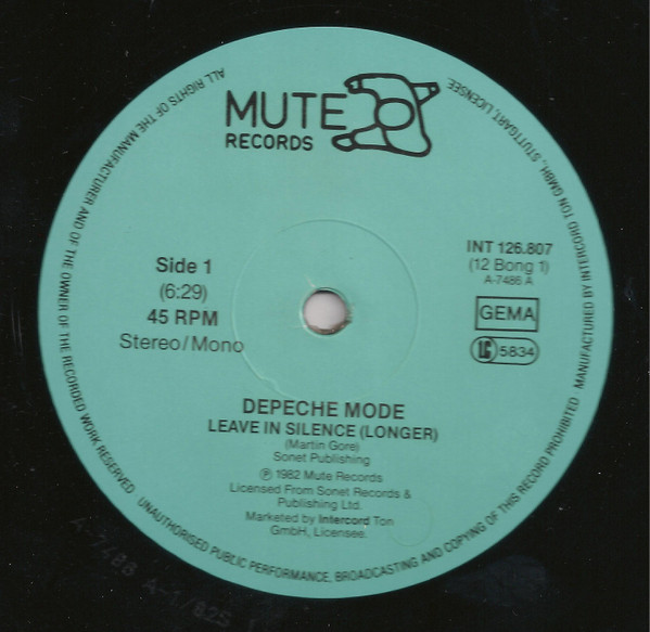 4. 1988 Black vinyl, repress with Mute logo 1 ("Walking Man"), new matrix and with bigger gap between the matrix and the rights society box (GEMA) on the labels than on the 1986 release