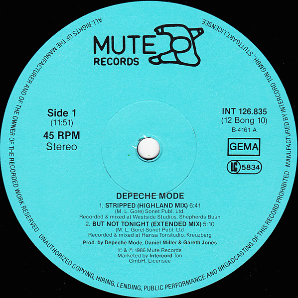 P&C credited to Mute Records on labels & Mute Records Ltd. on sleeve