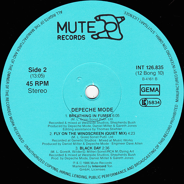 P&C credited to Mute Records on labels & Mute Records Ltd. on sleeve
