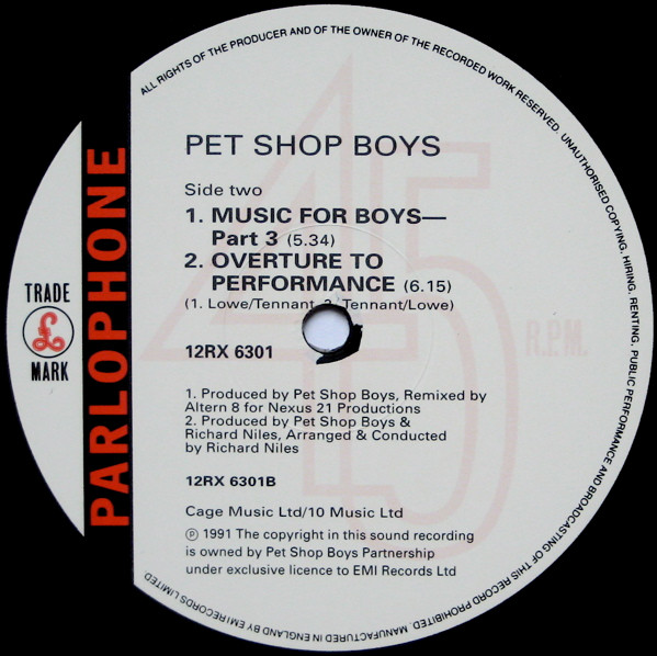 © 1991 Pet Shop Boys Partnership under exclusive license to EMI Records Ltd.