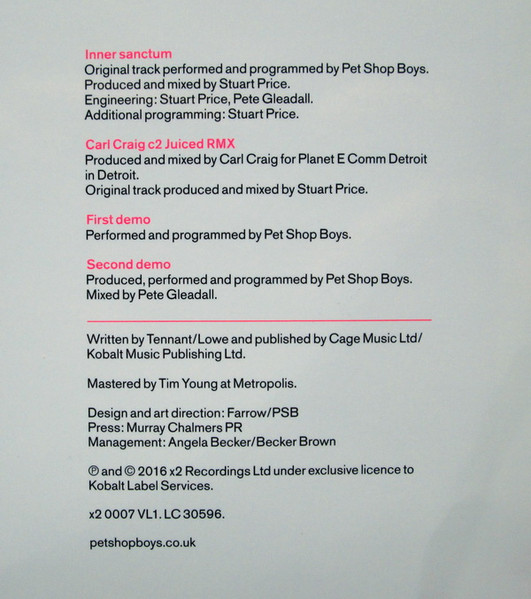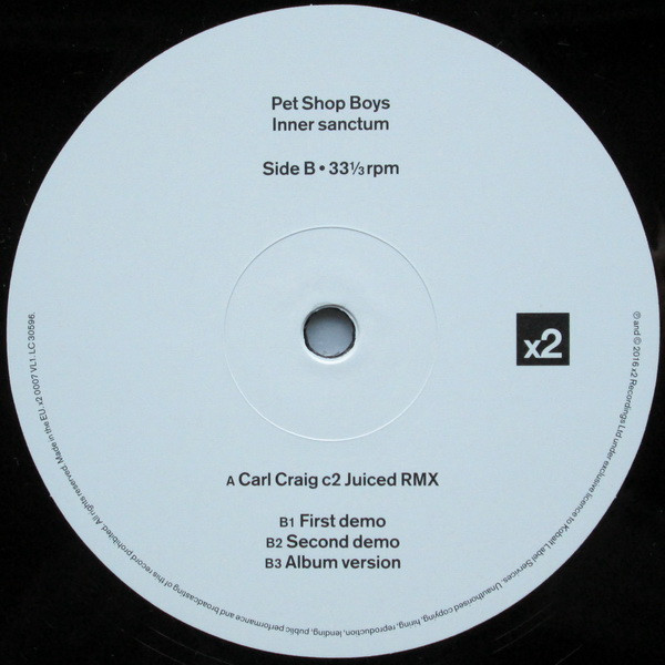 White sticker on shrinkwrap reads "Pet Shop Boys Includes Carl Craig Remix and original demo versions".