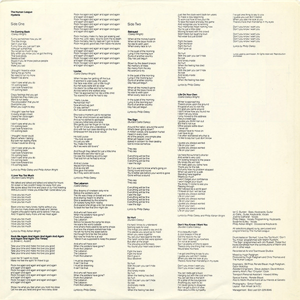 - Lyrics By – Philip Adrian Wright (tracks: A2, B4), Philip Oakey (tracks: A1, A4 to B5)