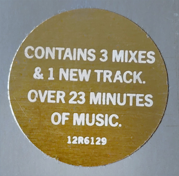 Some sleeves carry a sticker with the text 'Contains 3 mixes & 1 new track. Over 23 minutes of music. 12R6129'.