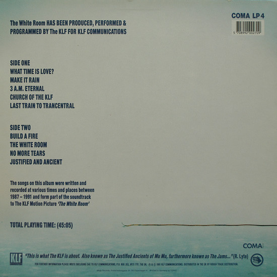 The songs on this album were written and recorded at various times and places between 1987 - 1991 and form part of the soundtrack to the KLF motion picture 'The White Room'.