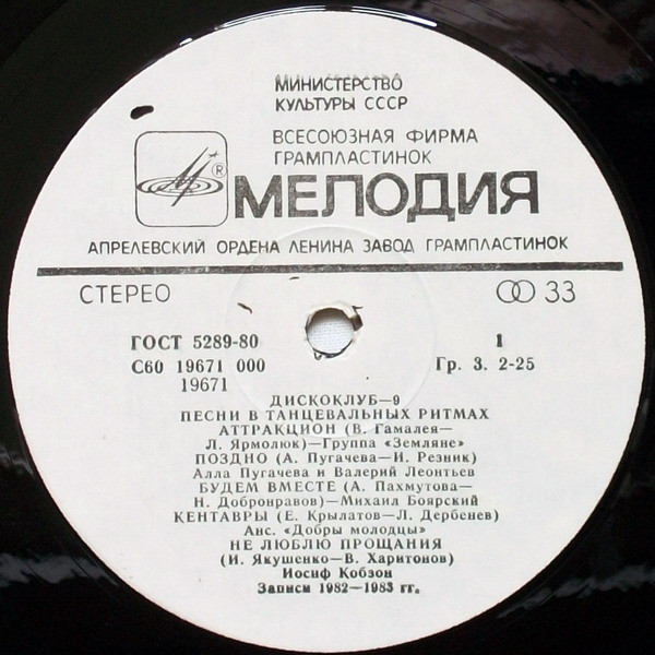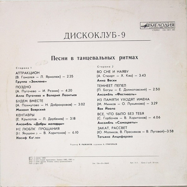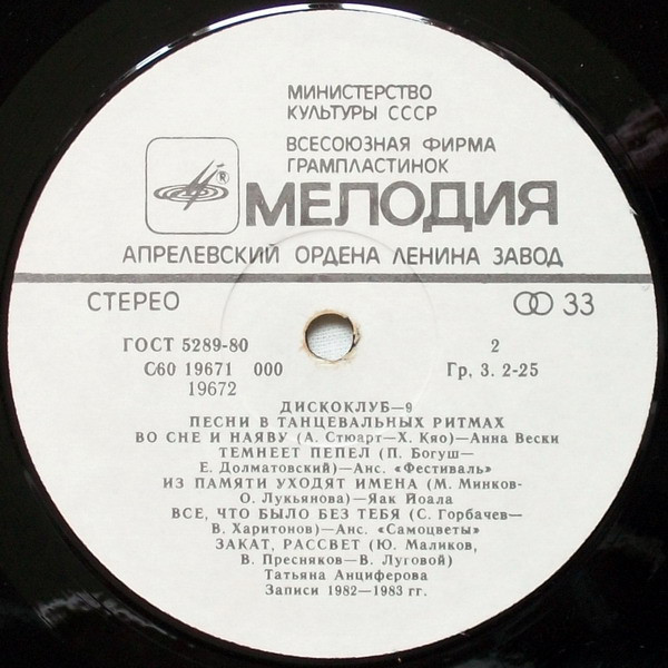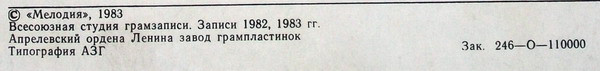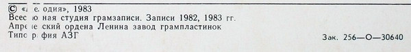 Всесоюзная студия грамзаписи. Записи 1982, 1983 гг.