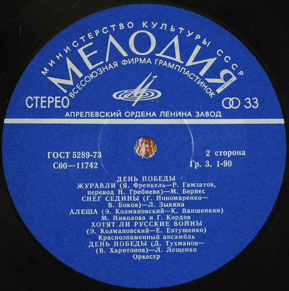 | B1 | М. Бернес*– | Журавли = Cranes | 3:35 |
