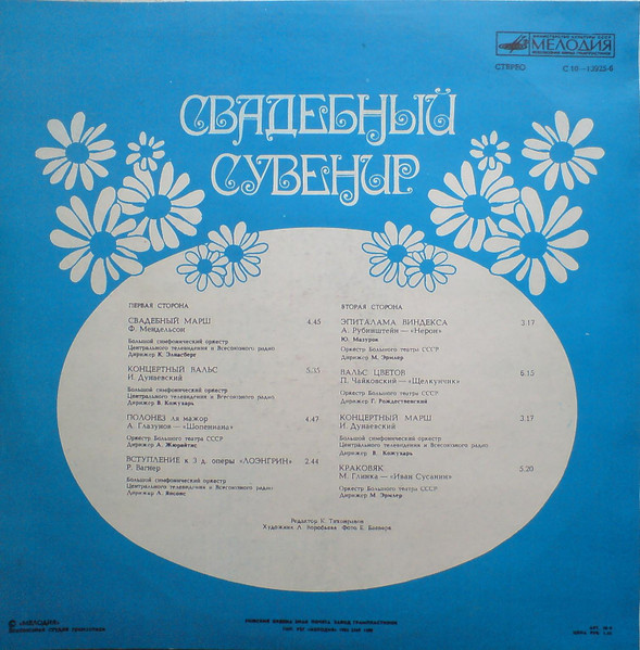 - Orchestra – Оркестр Большого Театра СССР* (tracks: A3, B1, B2, B4), Большой Симфонический Оркестр Центрального Телевидения И Всесоюзного Радио* (tracks: A1, A2, A4, B3)